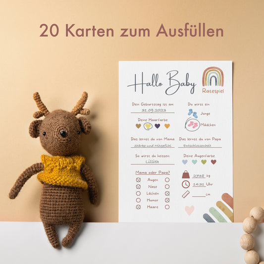 20 Ratespielkarten für Babypartys - Regenbogen Design - Babyparty Spiele für Gender-Reveal-Party und Babyshower, Tippkarten für Baby Mädchen und Jungen